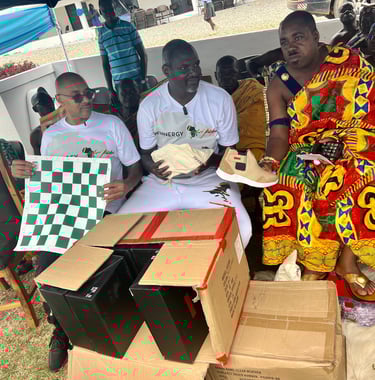 Afrikicks, with their container full of 6000 sneakers, and Winnergy, with their 20000 chess boards, played a crucial role in making this celebration possible. Each child received a pair of socks, a toy, snacks, and either slides or sneakers, ensuring that they had a memorable and enjoyable experience.